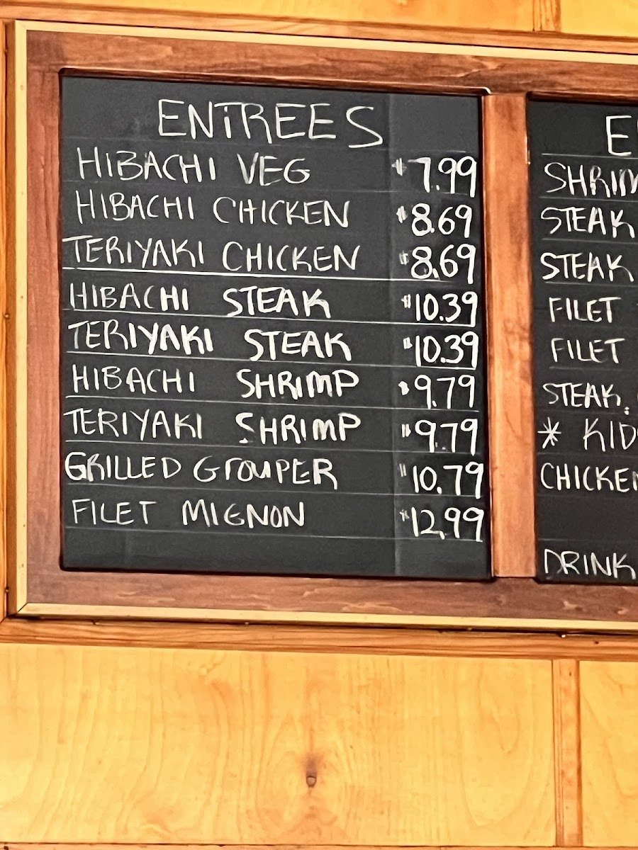 Expect comforting dishes such as hibachi chicken with rice or noodles, flavorful teriyaki options, and a variety of protein choices including shrimp, steak, and grouper. Vegetables prepared hibachi-style bring a fresh balance to the plates, making each meal feel complete without fuss.